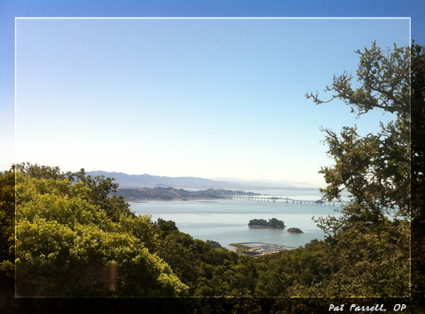 This morning I went on a hike up to the top of Gold Hill; there is a Nike Tower at the summit. It’s about a 2 mile hike up to the top. When I’ve gone up there before, one could walk all around it, but now there’s a fence that keeps you off that circular path. So I couldn’t capture quite so much of it as I would have liked. But the panorama of the Bay that could be seen from up there was amazing!