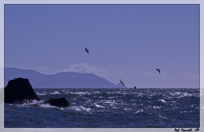 The image reminds me of taking a boat out to Skellig Michael in Ireland on a windy day. Lovely.