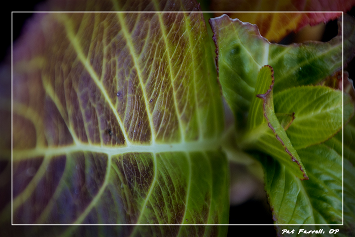 Resurrection, written on the leaves of the hydrangea