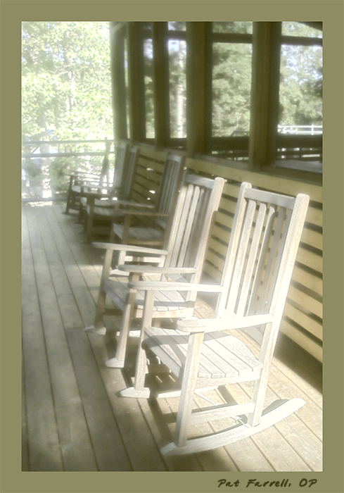 Thanks again Pat! When I saw your picture I immediately saw the rockers as left by those who were taken, not a place to sit for those who do not want to go! Isn’t that interesting how our heart always is part of our eyes? That is the glory of sharing pictures too, I get to see more than my eyes and heart already have seen!